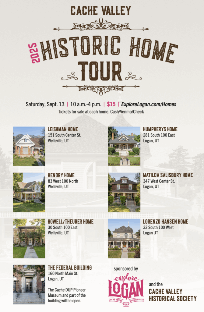 The 2025 Cache Valley Historic Home Tour is scheduled for Saturday, September 13, 2025 from 10am-4pm and will feature homes in Wellsville and Logan.